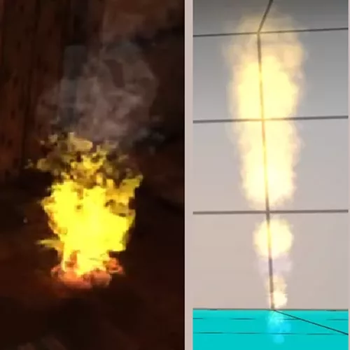 The OCB of a FLAME_EMITTER can be set to create horizontal or vertical collumns of flames, either continously or at intervals.